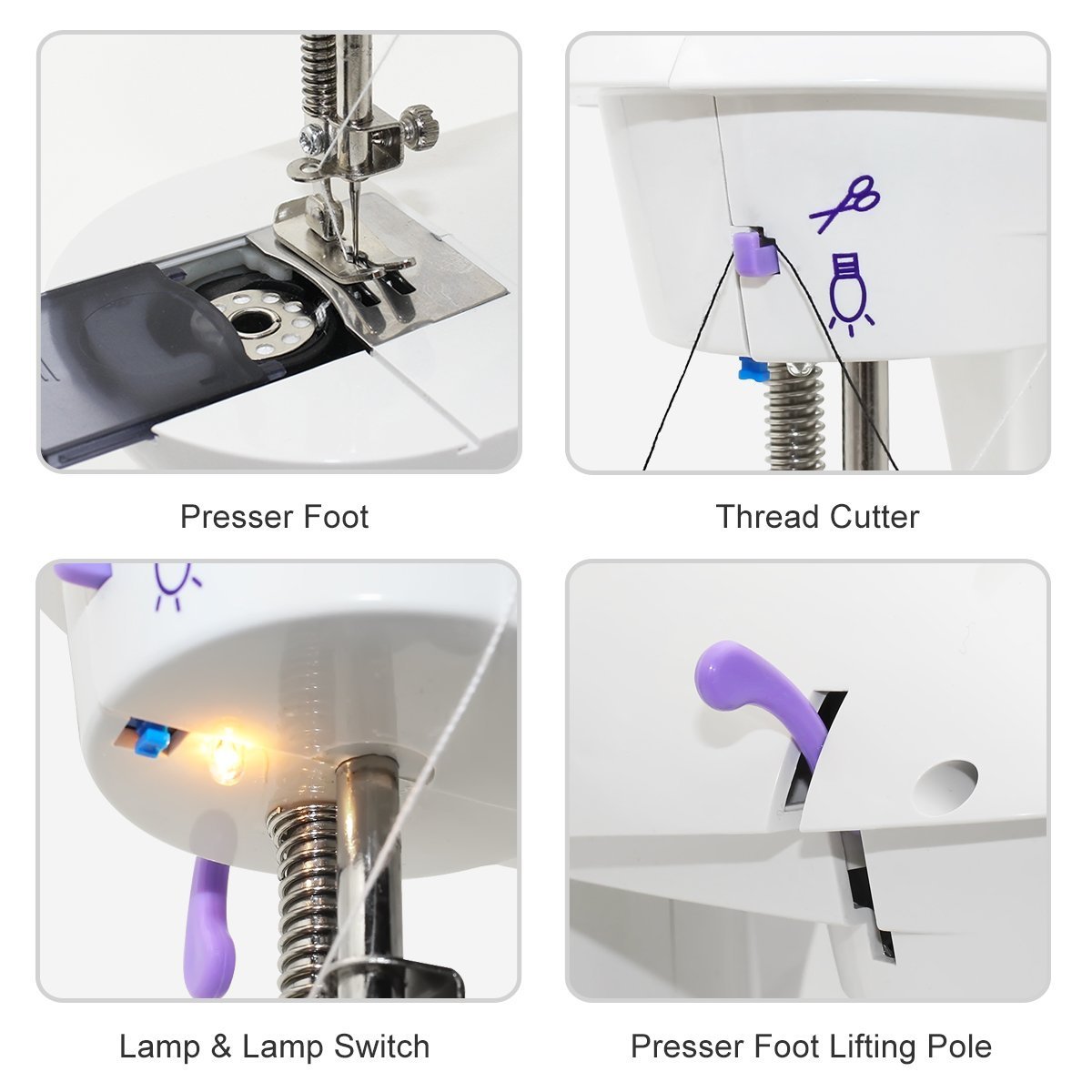 Mini Sewing Machine AU Plug Portable Electric Sewing Machine with Lamp and Thread Cutter High & Low Speeds Battery
